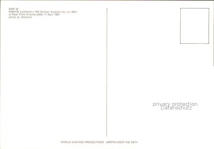 Flugzeuge Zivil Conifair Aviation WAP32 N494TW Lockheed L-749 c/n 2601 postalisch nicht gelaufen Erhaltung siehe scans