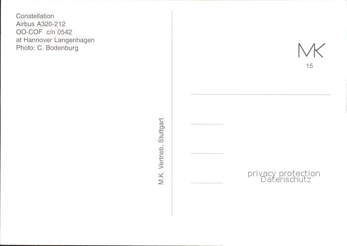 Flugzeuge Zivil Constellation Airbus A320-212 OO-COF c/n 0542 postalisch nicht gelaufen Erhaltung siehe scans