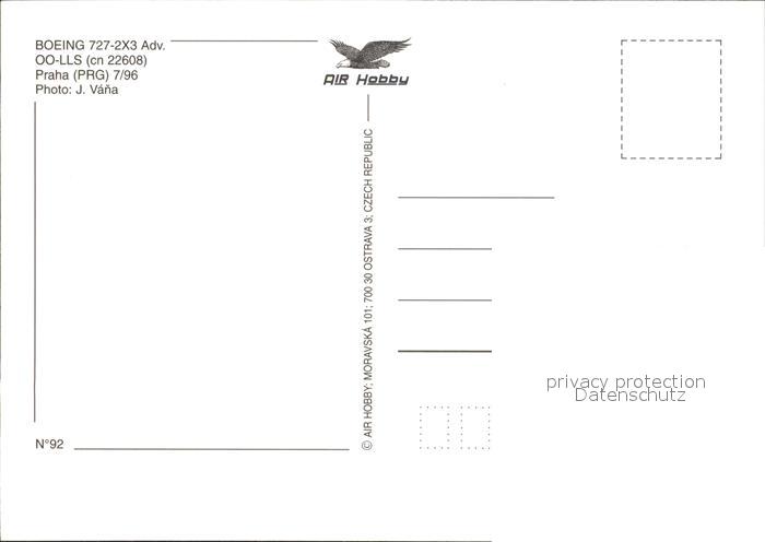 Flugzeuge Zivil Constellation Boeing 727-2X3 Advanced OO-LLS cn 22608 postalisch nicht gelaufen Erhaltung siehe scans