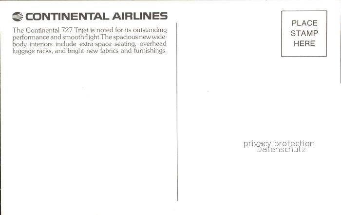 Flugzeuge Zivil Continental Airlines 727 postalisch nicht gelaufen Erhaltung siehe scans