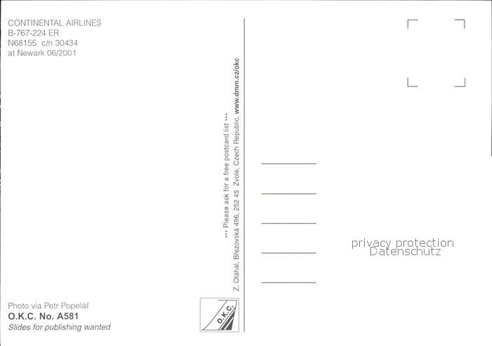 Flugzeuge Zivil Continental Airlines B-767-224 ER N68155 c/n 30434 postalisch nicht gelaufen Erhaltung siehe scans