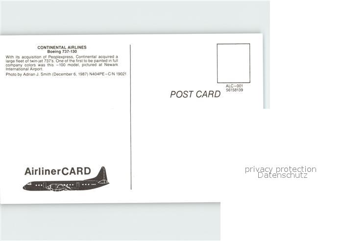Flugzeuge Zivil Continental Airlines Boeing 737-130 postalisch nicht gelaufen Erhaltung siehe scans