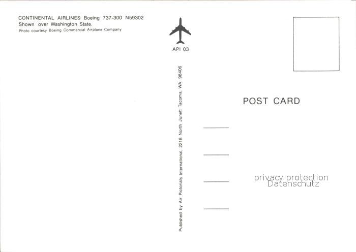 Flugzeuge Zivil Continental Airlines Boeing 737-300 N59302 postalisch nicht gelaufen Erhaltung siehe scans