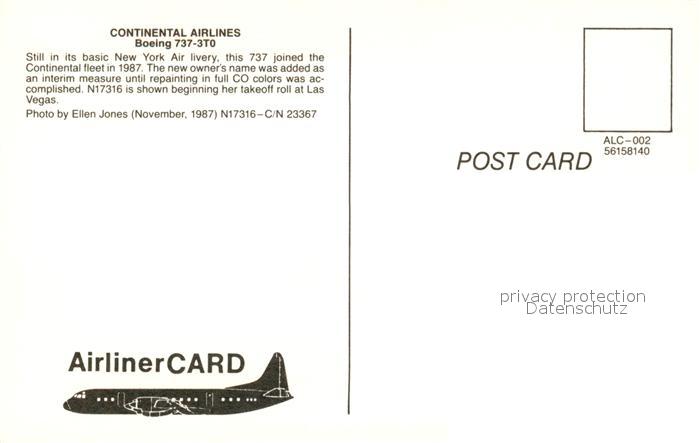 73254271 Flugzeuge Zivil Continental Airlines Boeing 737-3T0 N17316 C/N 23367 KatCode 22120000001300