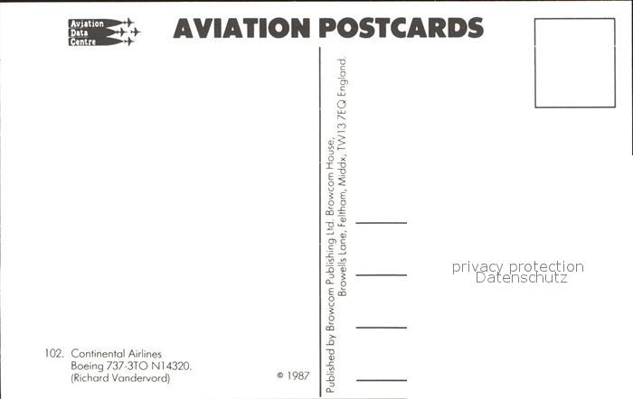 flugzeuge zivil Continental Airlines Boeing 737-3TO N14320 postalisch nicht gelaufen Erhaltung siehe scans