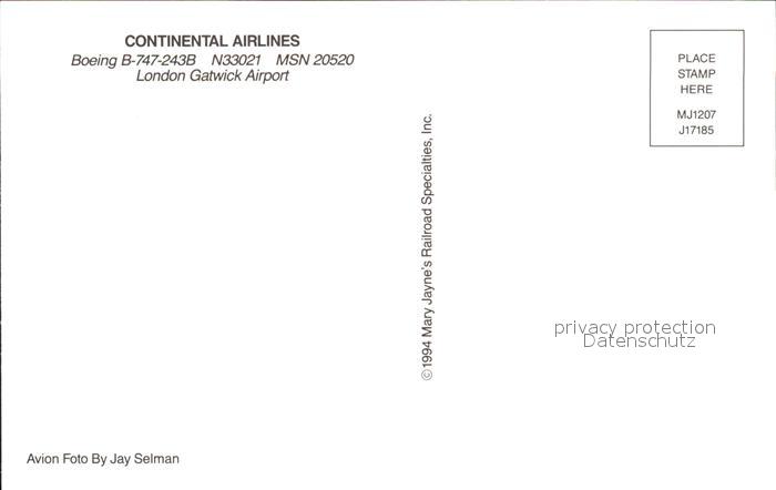 Flugzeuge Zivil Continental Airlines Boeing B-747-243 N33021 MSN 20520 postalisch nicht gelaufen Erhaltung siehe scans