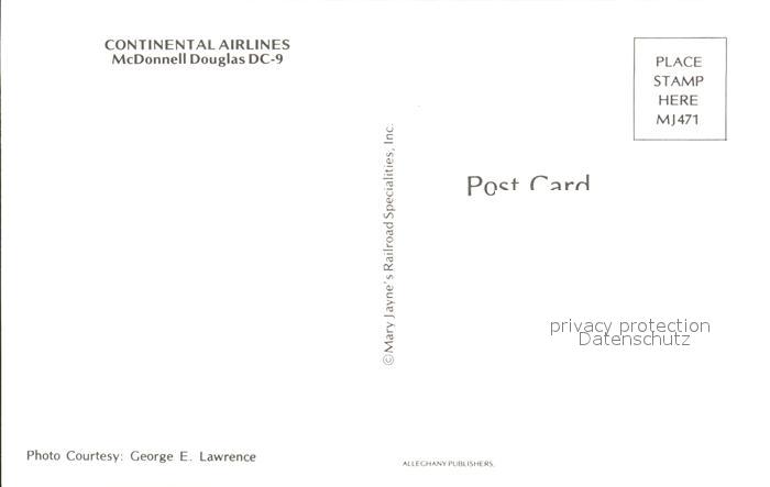 Flugzeuge Zivil Continental Airlines McDonnell Douglas DC-9 postalisch nicht gelaufen Erhaltung siehe scans