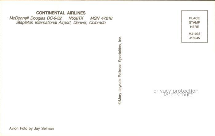 Flugzeuge Zivil Continental Airlines McDonnell Douglas DC-9-32 N538TX MSN47218 postalisch nicht gelaufen Erhaltung siehe scans