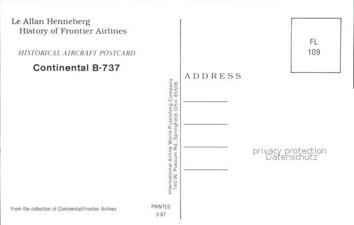 Flugzeuge Zivil Continental B-737 postalisch nicht gelaufen Erhaltung siehe scans