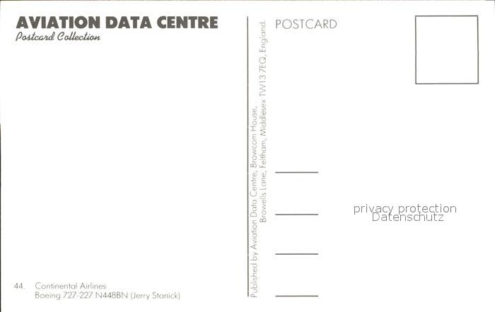 Flugzeuge Zivil Continental Boeing 727-227 N448BN postalisch nicht gelaufen Erhaltung siehe scans
