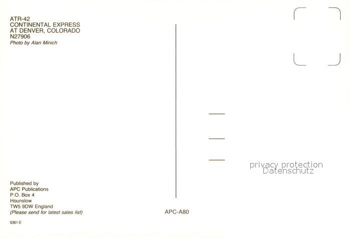 Flugzeuge Zivil Continental Express ATR-42 N27906 postalisch nicht gelaufen Erhaltung siehe scans [PaolaD17]