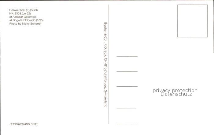 Flugzeuge Zivil Convair 580 F SCD HK-3559 cn 62 Aerocar Colombia postalisch nicht gelaufen Erhaltung siehe scans