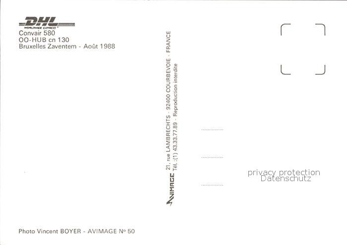 Flugzeuge Zivil Convair 580 OO-HUB c/n 130 postalisch nicht gelaufen Erhaltung siehe scans