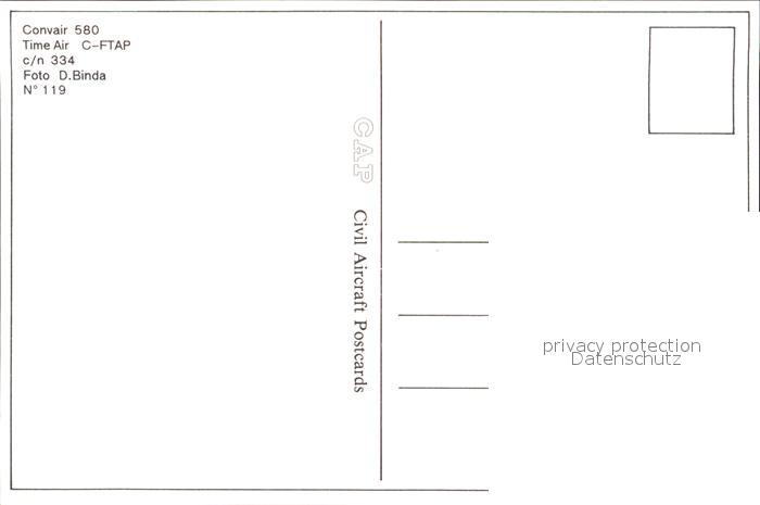 Flugzeuge Zivil Convair 580 Time Air C-FTAP c/n 334 postalisch nicht gelaufen Erhaltung siehe scans