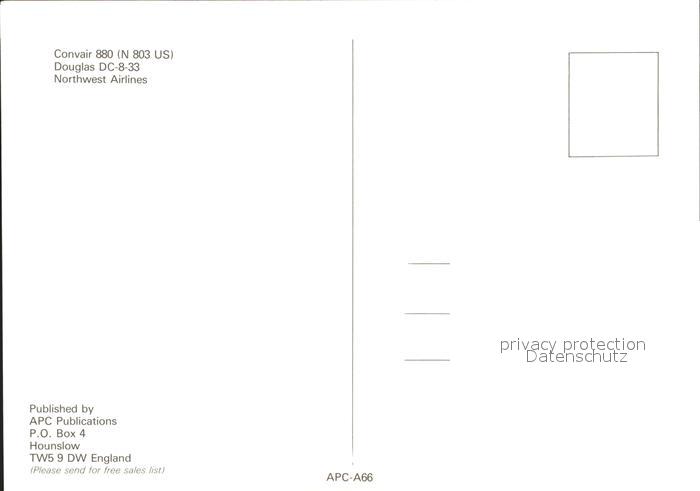 Flugzeuge Zivil Convair 880 N803US Douglas DC-8-33 Northwest Airlines postalisch nicht gelaufen Erhaltung siehe scans