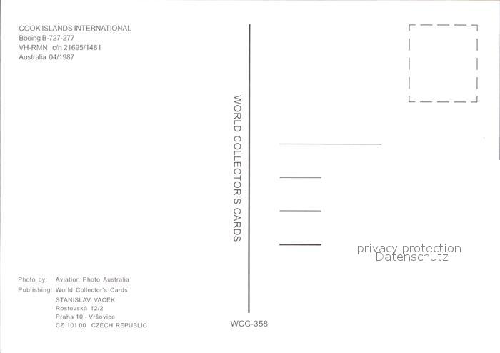 Flugzeuge Zivil Cook Islands International Boeing 727-277 VH-RMN postalisch nicht gelaufen Erhaltung siehe scans