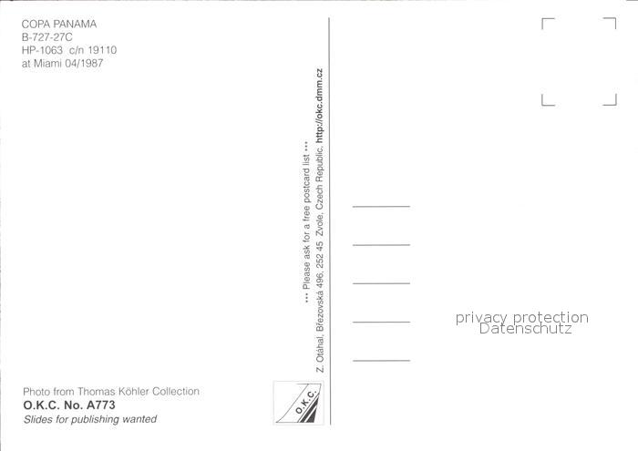 Flugzeuge Zivil Copa Panama B-727-27C HP-1063 c/n 19110 postalisch nicht gelaufen Erhaltung siehe scans