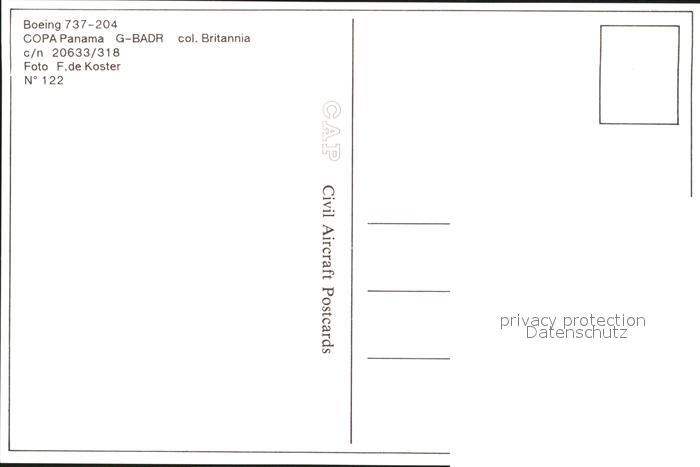Flugzeuge Zivil Copa Panama Boeing 737-204 G-BADR col. Britannia c/n 20633/318 postalisch nicht gelaufen Erhaltung siehe scans
