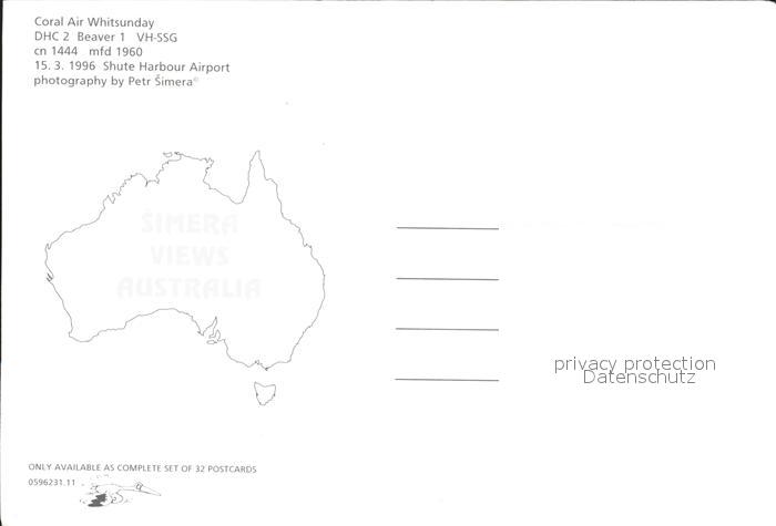 Flugzeuge Zivil Coral Air Whitsunday DHC-2 Beaver 1 VH-ssG cn 1444 postalisch nicht gelaufen Erhaltung siehe scans