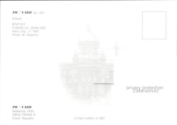 Flugzeuge Zivil Corsair B747-312 F-GSUN c/n 23030/593 postalisch nicht gelaufen Erhaltung siehe scans