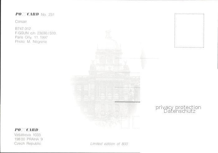 Flugzeuge Zivil Corsair B747-312 F-GSUN c/n 23030/593 postalisch nicht gelaufen Erhaltung siehe scans