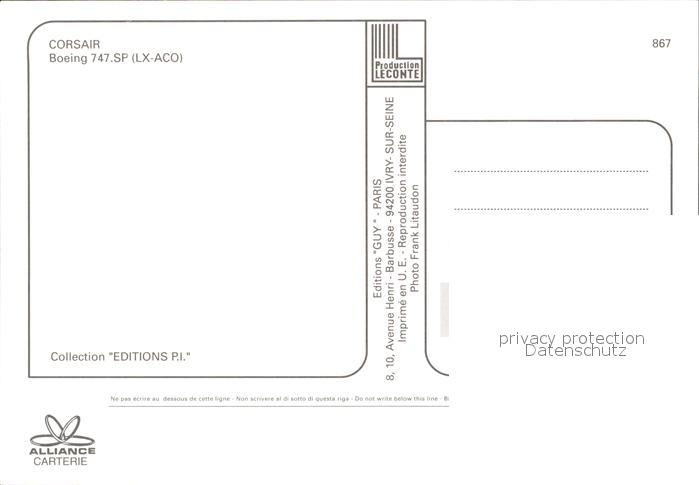 Flugzeuge Zivil Corsair Boeing 747SP LX-ACO postalisch nicht gelaufen Erhaltung siehe scans