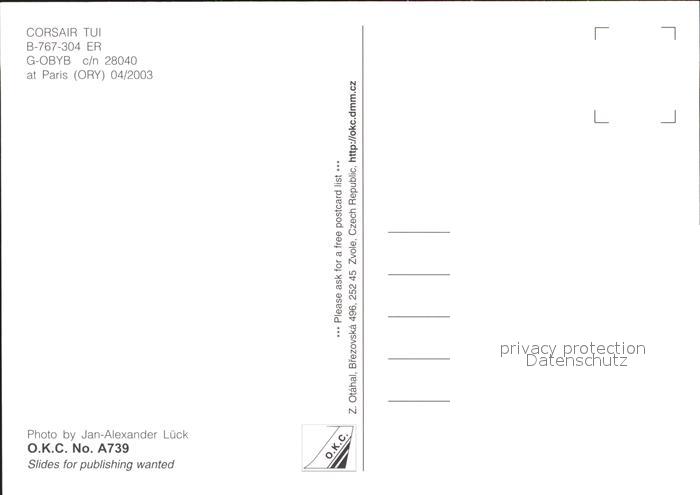 Flugzeuge Zivil Corsair Tui B-767-304 ER G-OBYB c/n 28040 postalisch nicht gelaufen Erhaltung siehe scans