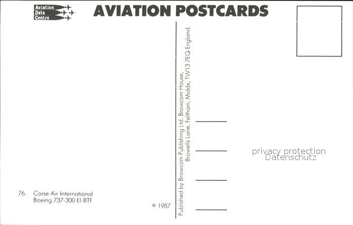 Flugzeuge Zivil Corse Air International Boeing 737-300 EI-BTF postalisch nicht gelaufen Erhaltung siehe scans