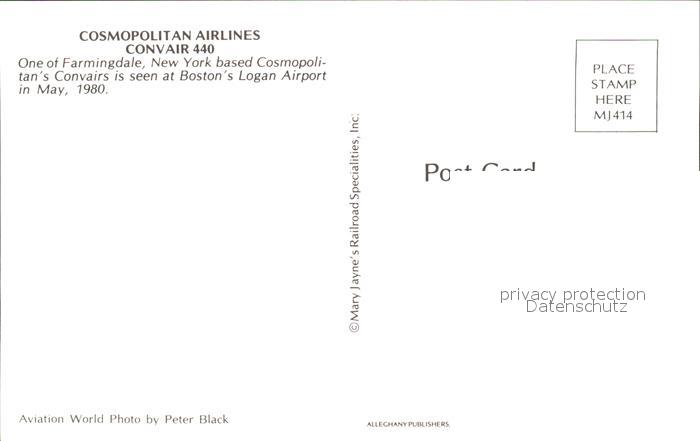 Flugzeuge Zivil Cosmopolitan Airlines Convair 440 postalisch nicht gelaufen Erhaltung siehe scans