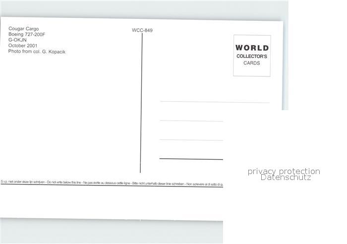 Flugzeuge Zivil Cougar Cargo Boeing 727-200F G-OKJN postalisch nicht gelaufen Erhaltung siehe scans