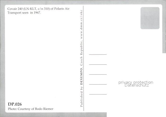 Flugzeuge Zivil Covair 240 LN-KLT c/n 310 Polaris Air Transport postalisch nicht gelaufen