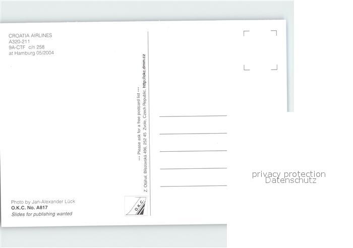 72176966 Flugzeuge Zivil Croatia Airlines A320-211 9A-CTF c/n 258 KatCode 22120000001300