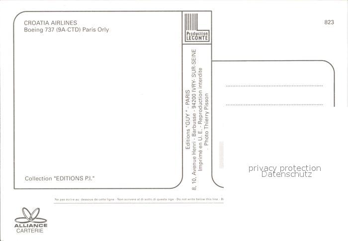 Flugzeuge Zivil Croatia Airlines Boeing 737 9A-CTD postalisch nicht gelaufen Erhaltung siehe scans
