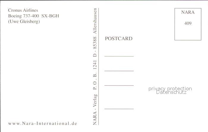 Flugzeuge Zivil Cronus Airlines Boeing 737-400 SX-BGH postalisch nicht gelaufen Erhaltung siehe scans