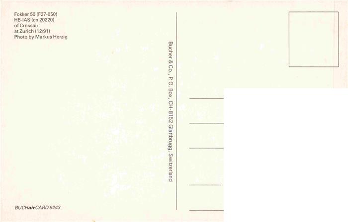74033641 Flugzeuge Zivil Crossair HB IAS 20220 Zuerich postalisch nicht gelaufen Erhaltung siehe scans [IrynaD87] KatCode: 22120000001300
