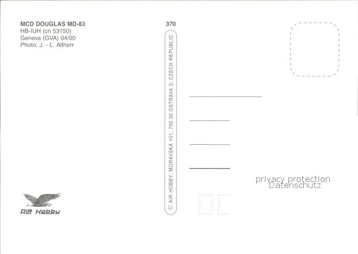Flugzeuge Zivil Crossair MCD Douglas MD-83 HB-IUH cn 53150 postalisch nicht gelaufen Erhaltung siehe scans