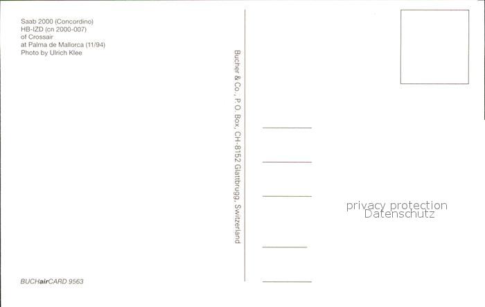 Flugzeuge Zivil Crossair Saab 2000 Concordino HB-IZD cn 2000-07 postalisch nicht gelaufen Erhaltung siehe scans