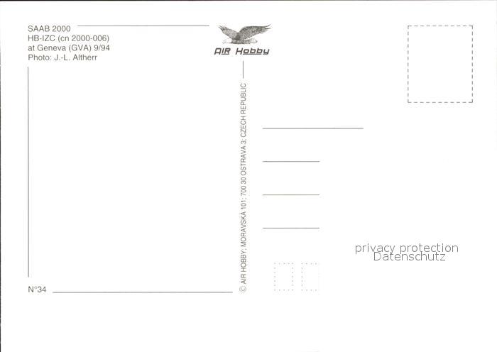 Flugzeuge Zivil Crossair SAAB 2000 HB-IZC (cn2000-006) postalisch nicht gelaufen