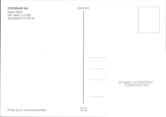 Flugzeuge Zivil Crossair Saab 340A HB-AHD c/n 018 postalisch nicht gelaufen Erhaltung siehe scans