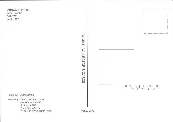 Flugzeuge Zivil Crown Express A-300 VH-BWF postalisch nicht gelaufen Erhaltung siehe scans
