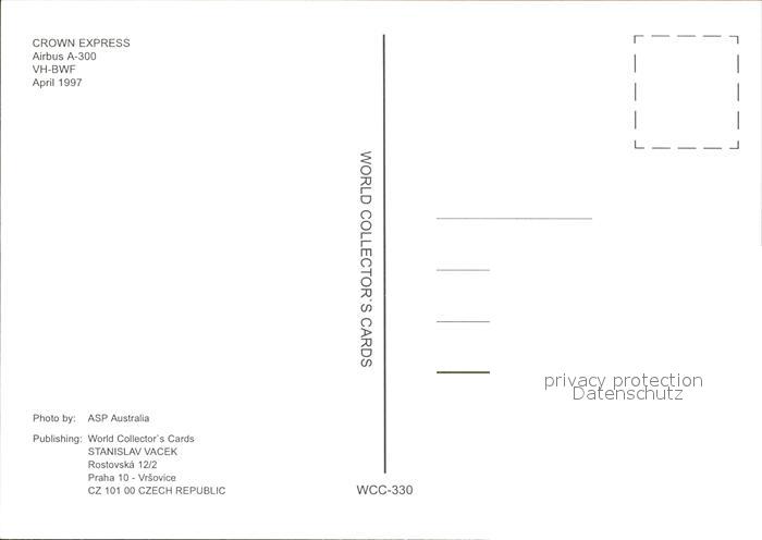Flugzeuge Zivil Crown Express Airbus A-300 VH-BWF postalisch nicht gelaufen Erhaltung siehe scans