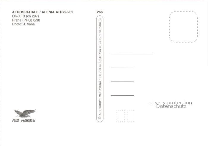 Flugzeuge Zivil CSA Aerospatiale Alenia ATR72-202 OK-XFB cn 297 postalisch nicht gelaufen Erhaltung siehe scans