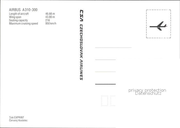 Flugzeuge Zivil CSA Airbus A310-300 postalisch nicht gelaufen Erhaltung siehe scans