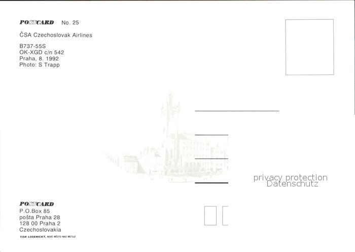 Flugzeuge zivil CSA B737-55S OK-XGD c/n 542 Praha postalisch nicht gelaufen Erhaltung siehe scans