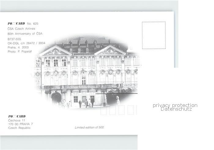 Flugzeuge Zivil CSA Czech Airlines 80th Anniversary B-737-55S OK-DGL postalisch nicht gelaufen Erhaltung siehe scans