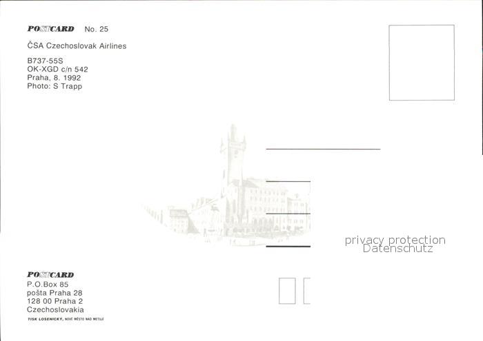 Flugzeuge Zivil CSA Czechoslovak Airlines B737-55S OK-XGD c/n542 postalisch nicht gelaufen Erhaltung siehe scans