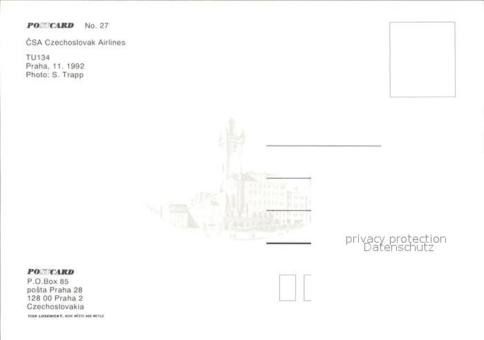 Flugzeuge Zivil CSA Czechoslovak Airlines TU134 postalisch nicht gelaufen Erhaltung siehe scans