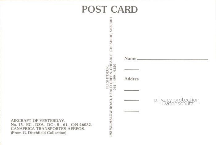 Flugzeuge Zivil CTA Canafrica Transportes Aereos EC-DZA DC-8-61 C/N 46032 postalisch nicht gelaufen Erhaltung siehe scans