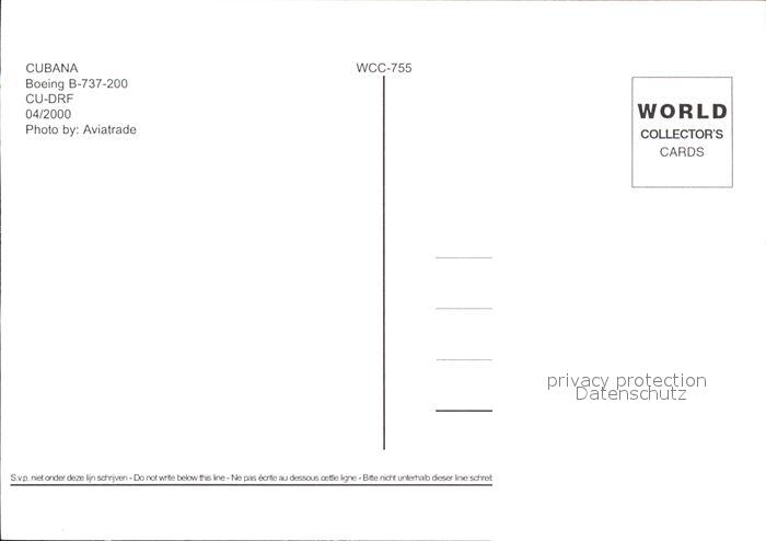 Flugzeuge Zivil Cubana Boeing B-737-200 CU-DRF postalisch nicht gelaufen Erhaltung siehe scans