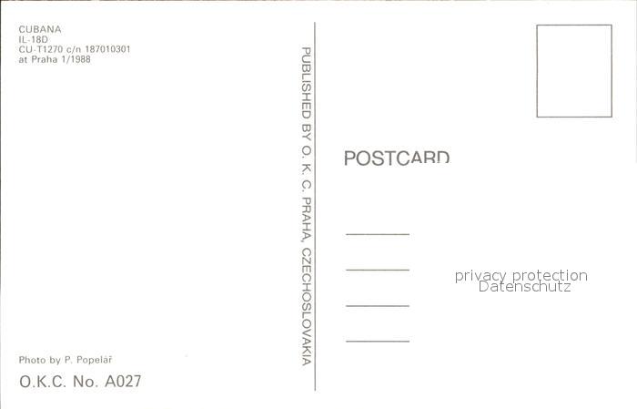 Flugzeuge Zivil Cubana IL-180 CU-T1270 postalisch nicht gelaufen Erhaltung siehe scans